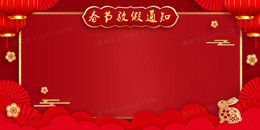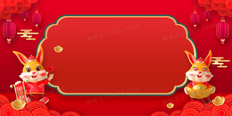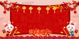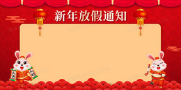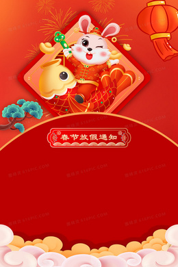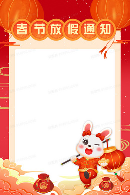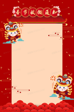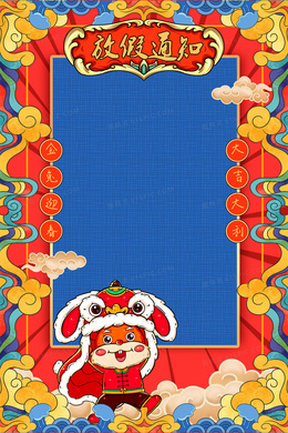 国潮中国风玉兔贺春舞狮新年放假通知背景