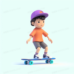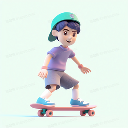 > 在滑板上准备转向的玩滑板的可爱男孩3D模型 (6)