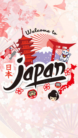 小清新日本旅游矢量图H5背景