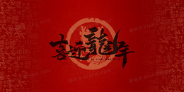 红色卡通龙年福字底纹合成背景