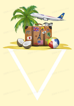 夏日旅行海南椰树旅行箱飞机出行背景素材