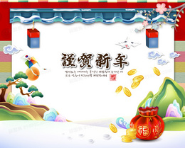 中式矢量对折页花朵过年贺卡邀请函婚礼贺卡