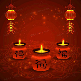 中式春节剪纸喜气过年灯笼福字蜡烛海报背景