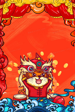 国潮新年动物舞狮边框背景