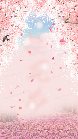 粉色浪漫春天樱花贺卡PSD背景