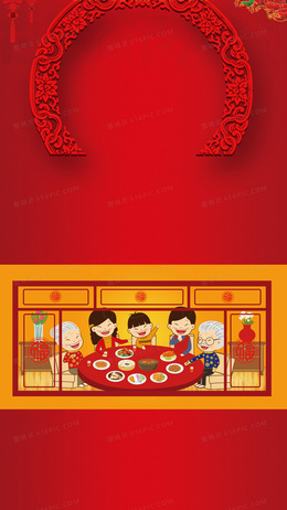 年夜饭H5红色背景psd下载