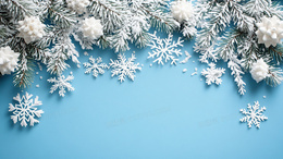 冬天白色雪花蓝色天空背景