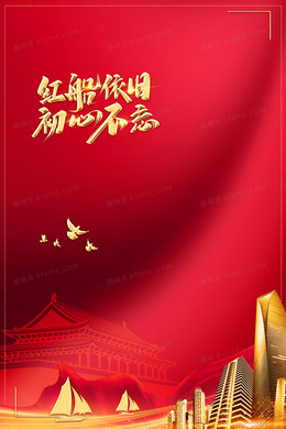 红船依旧初心不忘红金党政党建背景