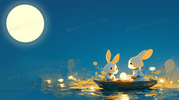 卡通中秋节兔子划船背景