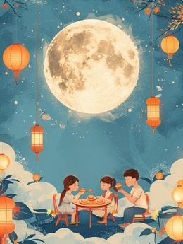 中秋节团圆卡通中国风花灯背景