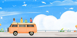 蓝天白云旅游自驾游插画背景