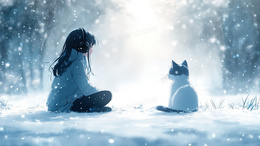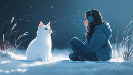 小女孩骑着猫咪在云层上漫步插画