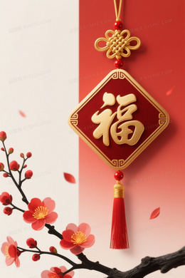 红金渐变福字梅枝背景