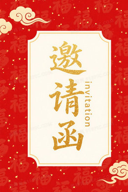 正红金祥云福字暗纹背景