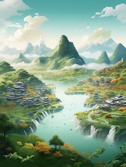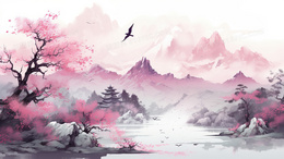 > 唯美春天风景中国风山水插画