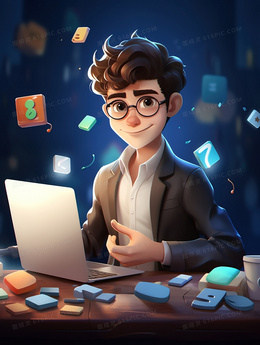 当前位置: 图精灵 > 背景图库 > 插画 > 卡通商务办公男程序员办公插画