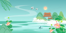 古风简约二十四节气小暑山水背景