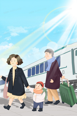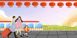 卡通创意春运一家人背景设计