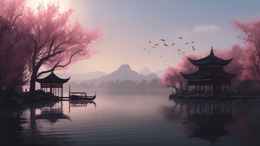 > 唯美粉色植物风景插画