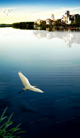 高端湖边别墅地产海报