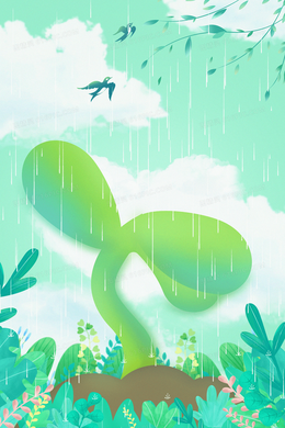 绿色青草地小溪唯美手绘插画卡通背景素材