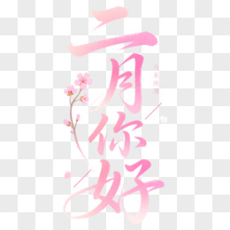你好二月艺术字免抠元素
