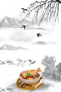 水墨中国风秋冬膳食养生背景