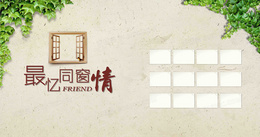 美式怀旧照片墙最忆同窗情绿叶海报背景