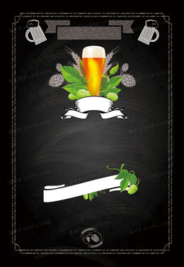 美食手绘卡通炸鸡肉类菜单黑色海报背景