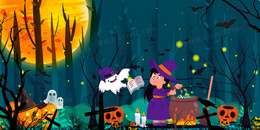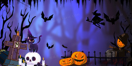 蓝色夜晚手绘万圣节插画卡通背景素材
