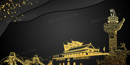 黑金简约大气党政风华表天坛背景