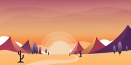 手绘扁平化沙漠狂野夕阳背景