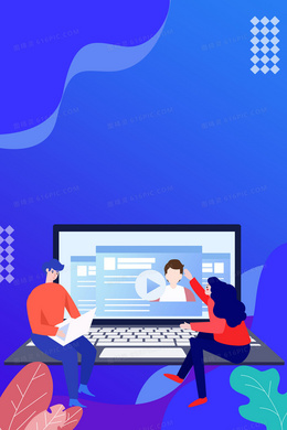 蓝色简约大气扁平手绘卡通计算机培训电脑编程背景