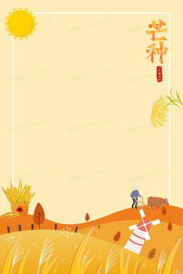 简约扁平化二十四节气芒种丰收麦穗麦田背景