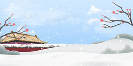 手绘红墙冬季寒冷大寒小寒雪景背景