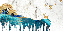 蓝色轻奢鎏金山水背景