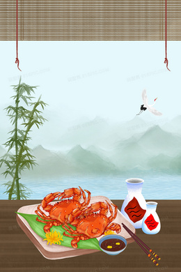 国潮风金秋蟹宴大闸蟹美食海报背景