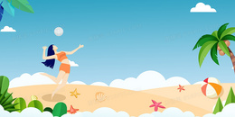 手绘卡通沙滩排球背景