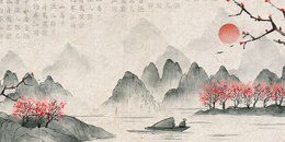 > 水墨淡彩古风荷花合成简约背景