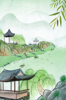 中国水墨淡彩风格的春茶茶叶饮茶背景