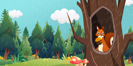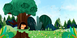 手绘插画风可爱树洞背景