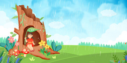 树洞卡通插画女孩背景