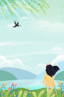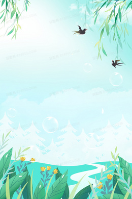 春季二十四节气惊蛰绿色吃梨柳条燕子背景
