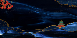 > 月满中秋红金鎏金祥云玉兔中国风背景