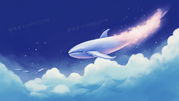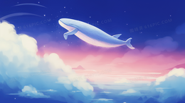 唯美梦幻女孩骑鲸鱼在天空遨游插画