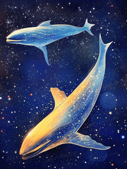 梦幻唯美云彩鲸鱼女孩卡通插画