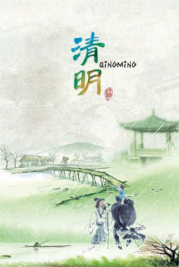简约大气中国风商务小清新质感清明时节落雨质感背景