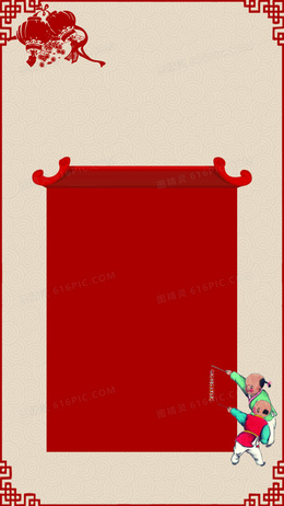 红色传统边框屋檐H5背景