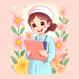 穿着蓝色护士服的护士拿着病历本3D模型插画