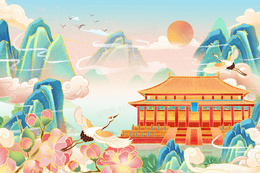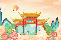 国潮山水中国风古建筑插画